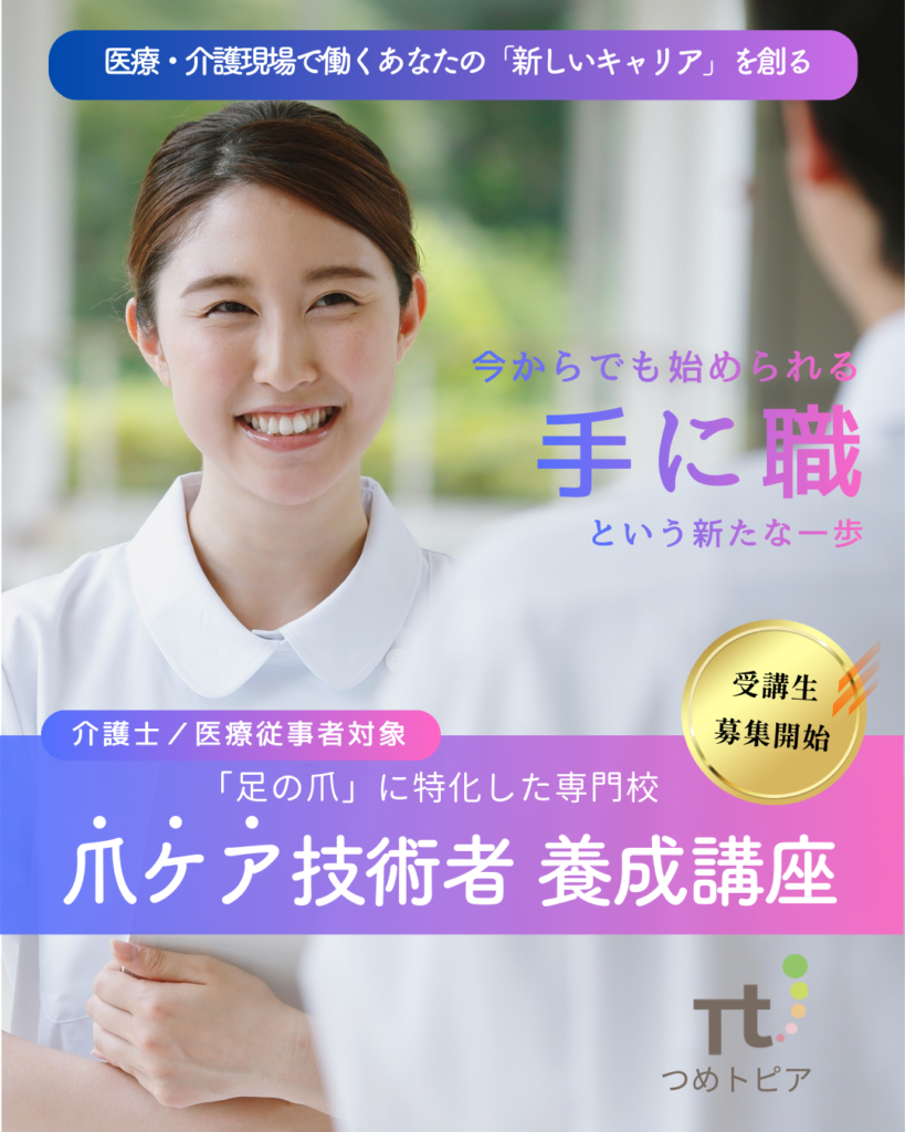医療介護従事者を等を対象とした「爪ケア技術者養成講座」が2024年3月から開講中