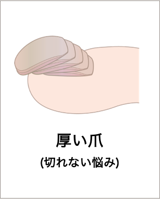 ①爪疾患の重症化を避ける爪水虫や爪の変形をそのままにしておくと重症化し、歩く障害になります。